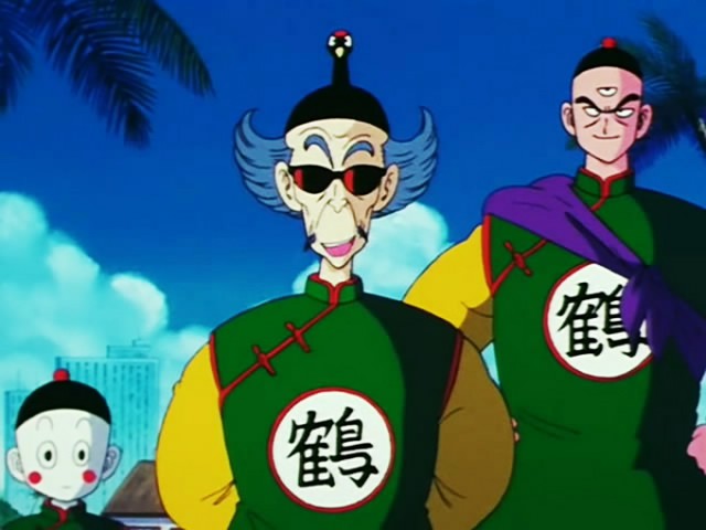 鹤 - Este é o ideograma usado por Mestre Tsuru e seus discípulos (Tenshinhan e Chaoz), que aparecem no capítulo 113 do mangá, no início do o 22 º Tenkaichi Budoukai. Tenshinhan e Chaoz deixaram de usar os trajes com os símbolos assim que abandonam Mestre Tsuru. O ideograma significa "Tsuru"(つる/ "corvo").