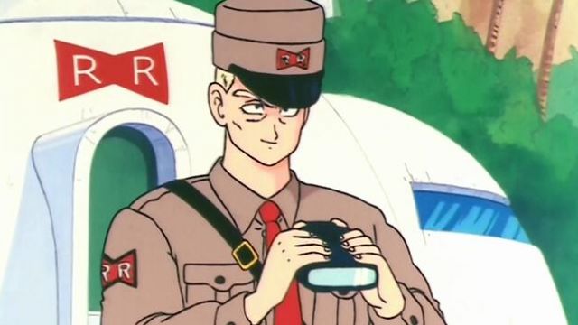 Este emblema era o símbolo do exército Red Ribbon. Podia-se ver isso em cada construção, equipamento, roupa ou máquina usada pelo exército, incluindo os androides criados pelo Dr. Gero. O emblema é composto das duas iniciais da palavra "Red Ribbon" (RR).