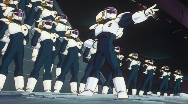 No fundo vemos uma cabeça de coelho na roupa dos soldados, este é o emblema usado pelo Exército dos Coelhos, em Dragon Ball.